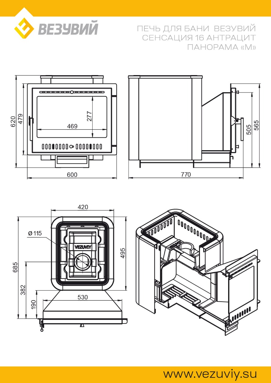 Договор заключается в момент оплаты Покупателем товара ТОЛЬКО в ОФЛАЙН-МАГАЗИНЕ. Делая предварительный заказ, Покупатель заверяет, что ознакомился и согласен с Политикой компании, она ему ясна и понятна.Печь для бани ВЕЗУВИЙ Сенсация 16 Антрацит Панорама "М"