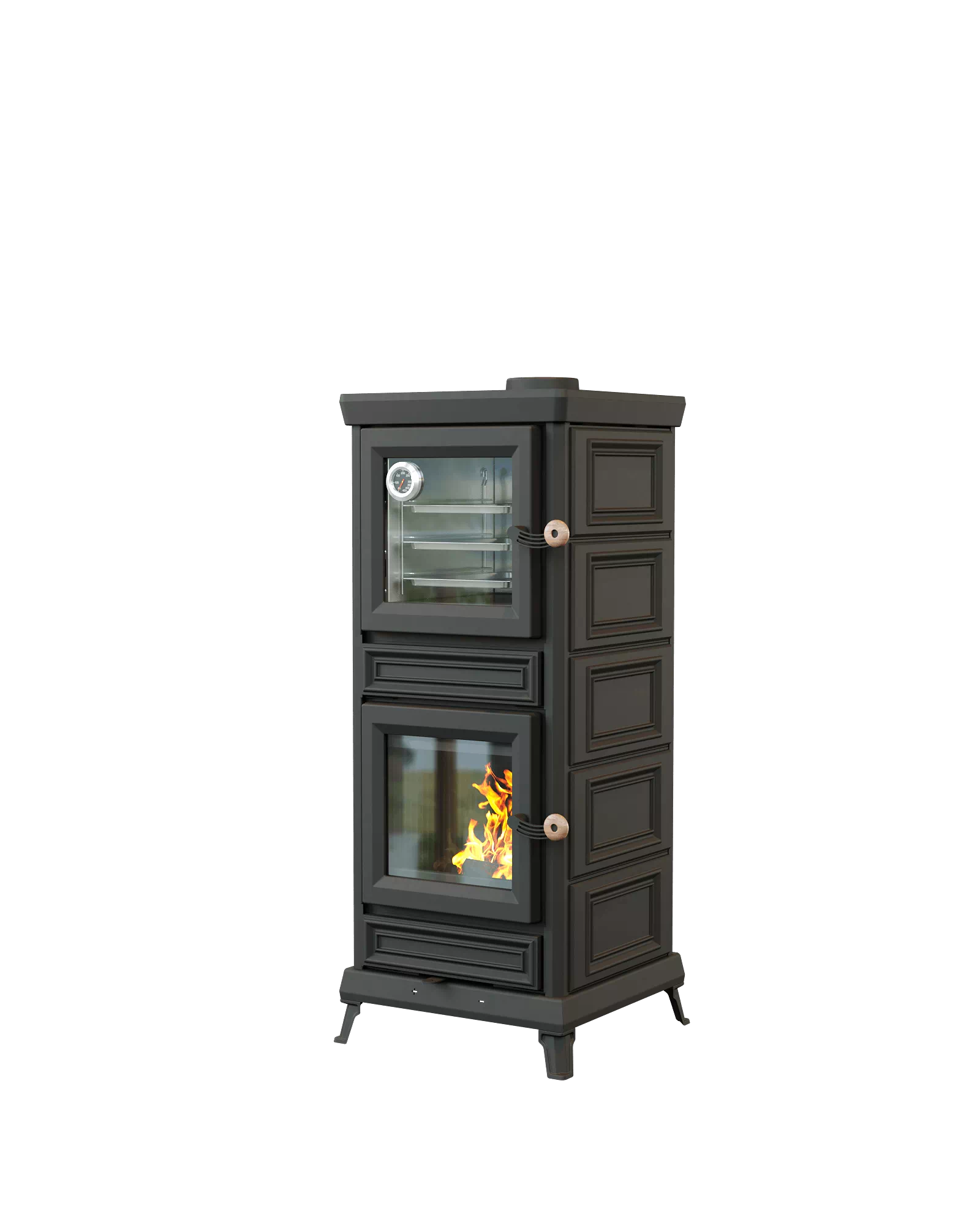 Для печи необходим дымоход ф 150. Его можно подобрать в разделе дымоходы. Рекомендуем обратить внимание, что первыми элементами от печи могут быть дымоходы черного цвета из котловой стали,которые можно подобрать в разделе дымоходы КПД