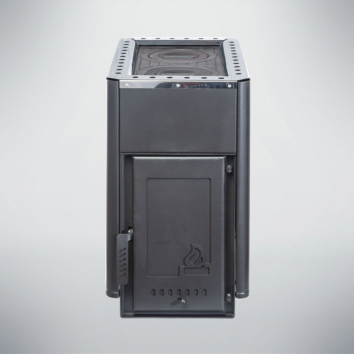 Печь снабжена чугунными конфорками для приготовления пищи. Регулировка интенсивности горения, осуществляется за счет открытия/закрытия зольного ящика, тем самым получая разные режимы теплоотдачи. Колено 90° входит в комплектацию к печи. Топка печи Варвара Уют изготовлена из стали 6 мм, наружный кожух - металлический, препятствует жесткому излучению и позволяет быстро прогреть помещение за счет конвекции. Чугунная дверка проста и надежна в эксплуатации.