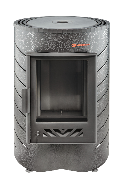 Отопительно варочная печь-камин Ферингер Нелжа это дровяная печь без колосникового типа. Топка печи изготовлена из жаропрочной нержавеющей стали макри AiSi 439. Конструкция корпуса печи обеспечивает максимальную передачу тепла, получаемого в процессе горения топлива. Особенности модели - наличие полости в корпусе для закладки 50 кг камней. Печь спроектирована и как отопительно варочная и отвечает следующим требованиям: растопка и активное горение в течении 3-5 часов, затем в течении 2-3 часов передача тепла от нагретых камней (функция горячей батареи). В печи предусмотрена система "чистое стекло", дверка максимально герметична, чугунный варочный настил позволит готовить пищу.