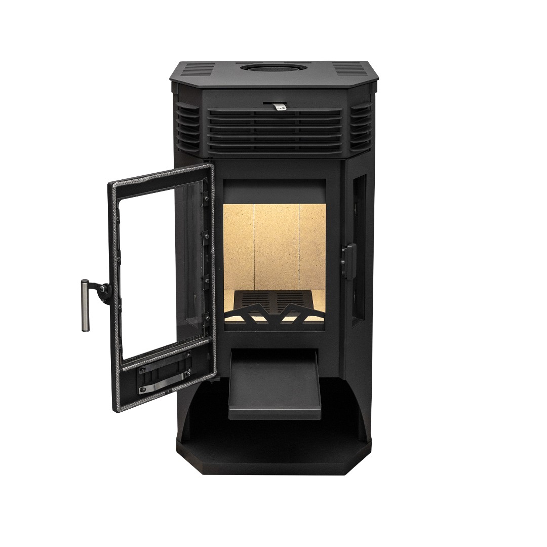 Печь оснащена призматической дверцей с крупными стеклами.