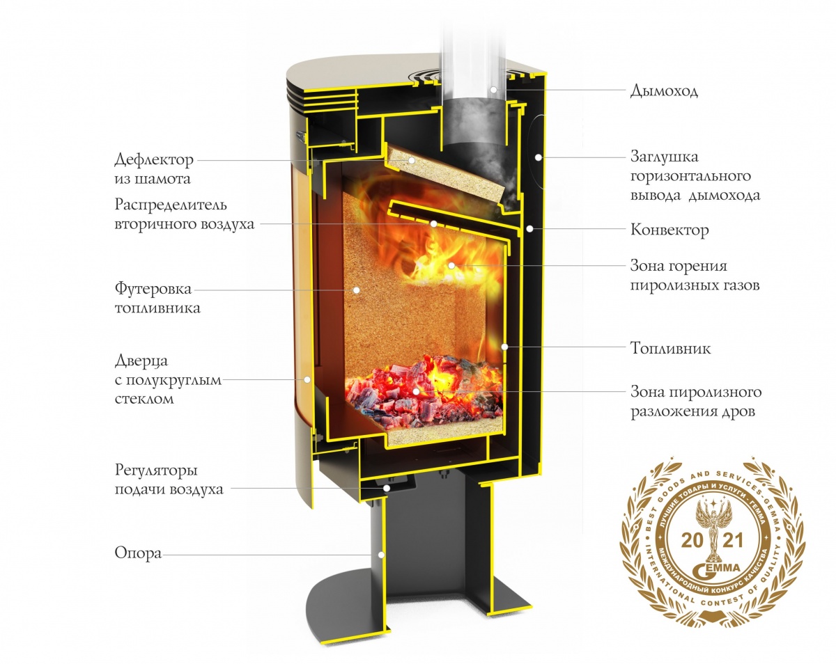 Для печи необходим дымоход диаметром 150 мм. Его можно подобрать в разделе дымоходы. Рекомендуем обратить внимание, что первыми элементами от печи могут быть дымоходы черного цвета из котловой стали,которые можно подобрать в разделе дымоходы КПД