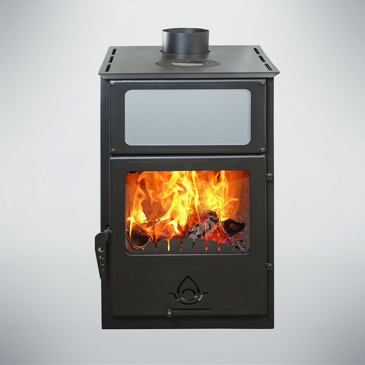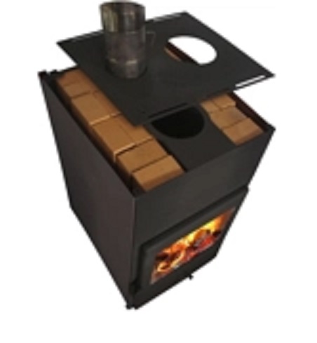 Печь камин гармония 1309 является дровяным камином аккумуляторного типа. Во внешней части печи, вдоль дымового канала под верхней крышкой, находятся специальные карманы, в которые помещается 16 печных кирпичей. Эти карманы специально сконструированы вдоль конвекционных каналов, чтобы циркуляция воздуха была постоянной. Также, как засыпной карман может использоваться и отбойник печи. Его же можно заполнить не только кирпичом, но и другим аккумулирующим материалом (например, песок). На верхней крышке печи находится варочная панель для приготовления пищи. Данная модель, дополнительно может комплектоваться специальным подиумом дровницей, который сделает печь выше и позволит удобно хранить дрова!