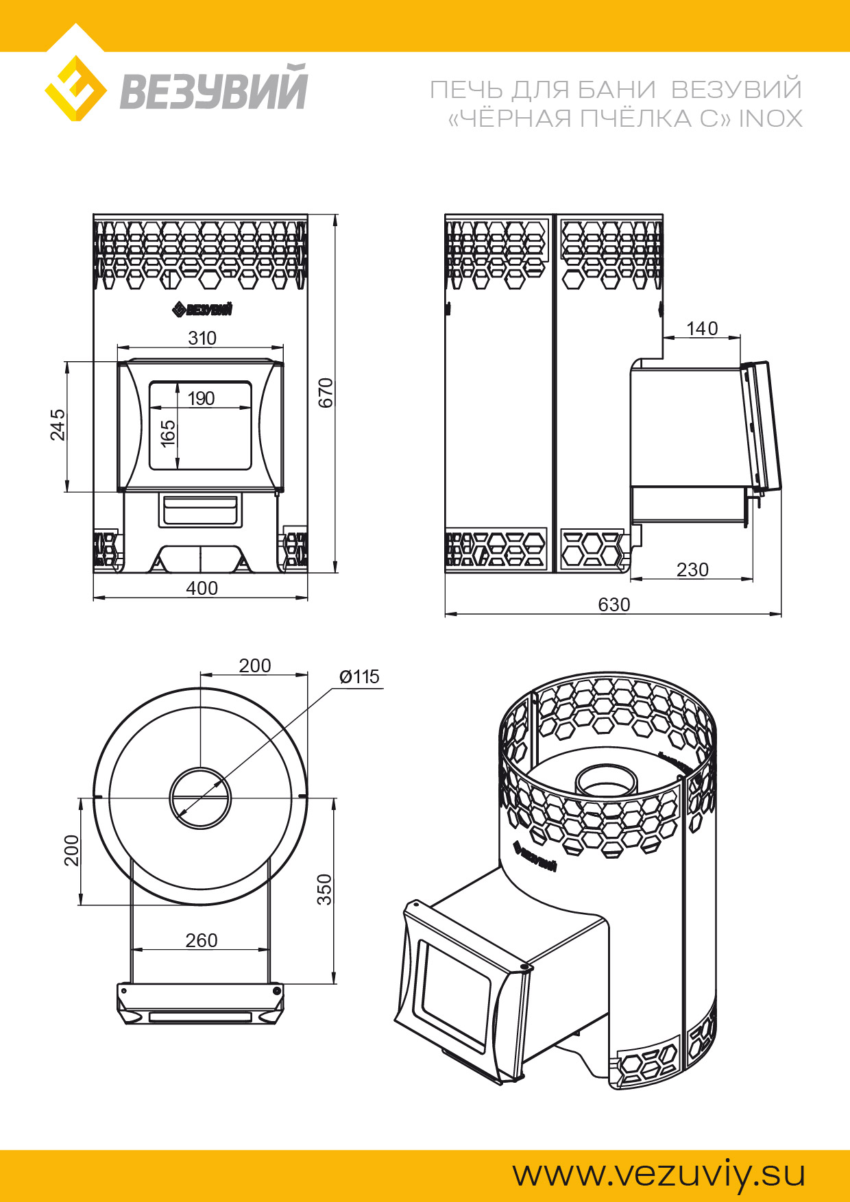 Договор заключается в момент оплаты Покупателем товара ТОЛЬКО в ОФЛАЙН-МАГАЗИНЕ. Делая предварительный заказ, Покупатель заверяет, что ознакомился и согласен с Политикой компании, она ему ясна и понятна.Печь для бани Везувий "Чёрная Пчёлка С" Нержавеющая сталь (Inox) со стеклом