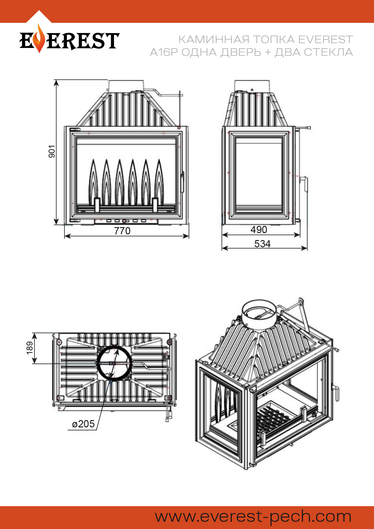 Договор заключается в момент оплаты Покупателем товара ТОЛЬКО в ОФЛАЙН-МАГАЗИНЕ. Делая предварительный заказ, Покупатель заверяет, что ознакомился и согласен с Политикой компании, она ему ясна и понятна.Каминная топка ЭВЕРЕСТ (EVEREST) A16P